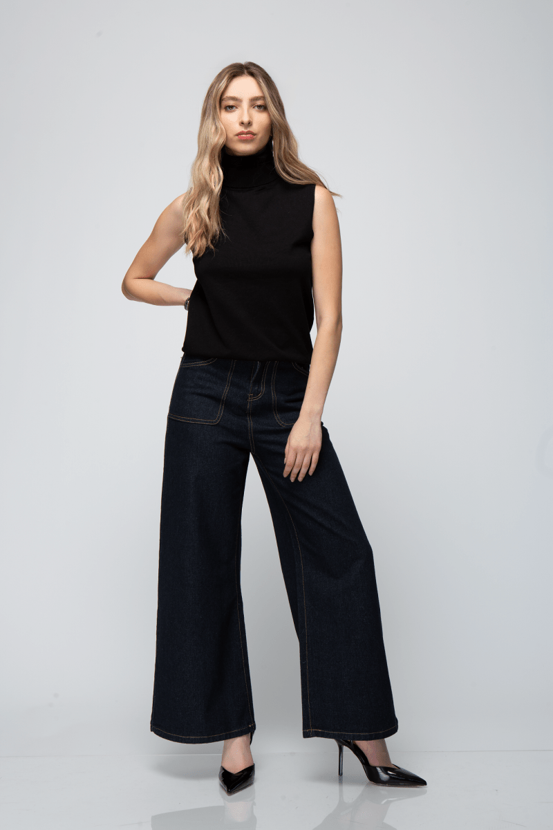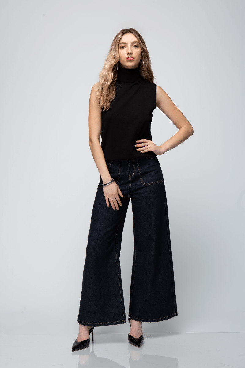 BLUSA TEJIDA SIN MANGAS CUELLO TORTUGA